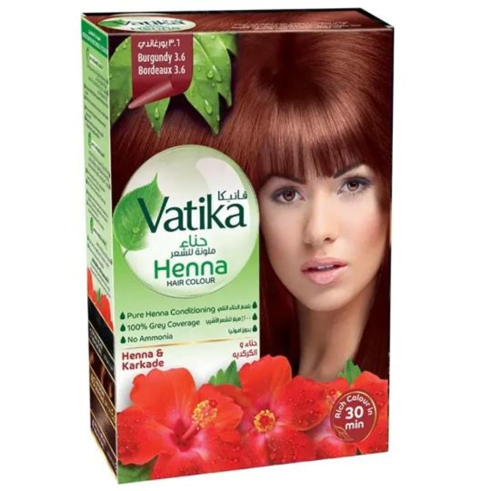 Vatika Herbal Henna for Hair in Burgundy 3.6 is a natural ammonia-free hair color designed to color and nourish your hair simultaneously. This henna provides a rich and vibrant color while caring for your hair, leaving it looking healthier and shinier.Key Benefits:Natural Coloring: Offers a rich, vibrant color without the use of harsh chemicals.Nourishment & Strength: Contains natural ingredients that nourish and strengthen the hair, improving its health and appearance.Perfect Coverage: Provides full coverage for gray hair, giving you a youthful and lively look.Ammonia-Free: Ensures a gentle and safe coloring process for both your hair and scalp.How to Use:Mix the henna with warm water to achieve a smooth paste.Apply the paste to damp hair, focusing on the roots and tips.Leave the henna on for 30-45 minutes, then rinse thoroughly with water.For best results, it is recommended to use Vatika Herbal Henna regularly as part of your hair care routine.
