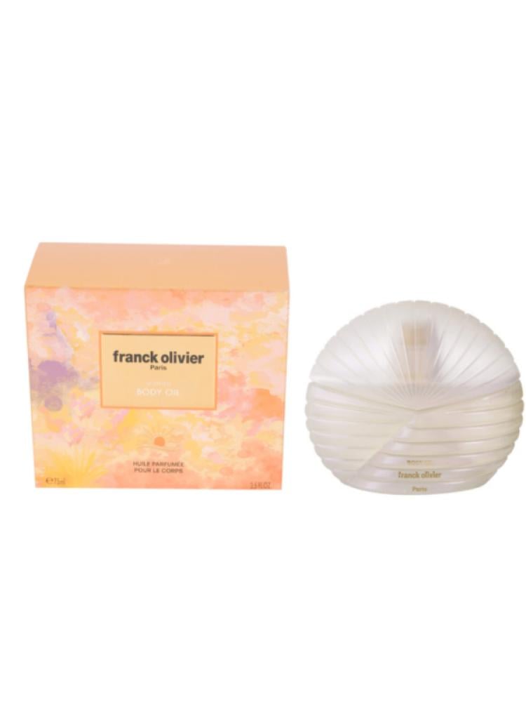 Pamper your skin with a soft touch and a luxurious fragrance with Franck Oliver's scented body oil. This luxurious formula combines deep hydration with an alluring scent for an unforgettable pampering experience. Ideal for daily use after showering, it leaves your skin feeling soft and refreshed for a long time.Benefits:Moisturizes the skin and leaves it feeling silky smooth.A long-lasting, elegant, feminine fragrance that enhances your appeal.Enriched with nourishing oils that soften and protect the skin from dryness.A lightweight formula that absorbs quickly without leaving a greasy residue.An elegant 75ml bottle—perfect for a purse or travel.How to Use:Apply an appropriate amount to your skin after showering or anytime you need a touch of hydration and fragrance, and gently massage until fully absorbed.Franc Oliver—the body oil that combines care and luxury.