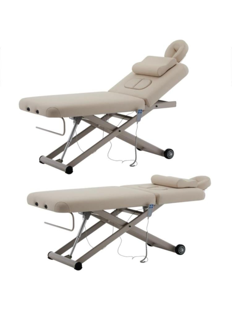 A stylish and modern two-motion electronic beauty bed, designed to provide maximum comfort and flexibility during skincare, massage, and laser treatme...