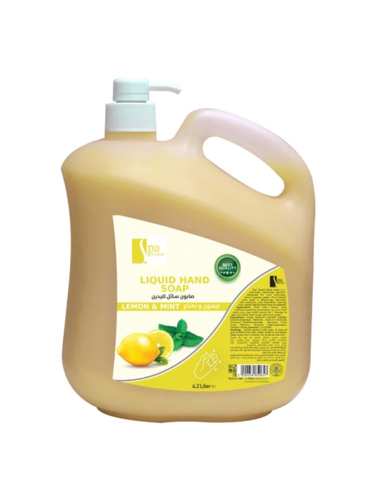 Spa System Lemon Liquid Hand Soap is the perfect solution to effectively clean your hands with a touch of freshness. This soap provides a wonderful care experience thanks to its refreshing scent and hand cleaning benefits.Product Features:Refreshing scent: Gives your hands a refreshing lemon scent that enhances the feeling of freshness throughout the day.Effective cleaning: Contains active ingredients that gently clean hands and remove dirt and bacteria.Gentle formula: Cares for the skin without drying it out, keeping it soft and moisturized.Convenient size: Comes in a 4.2 liter size, making it ideal for use at home or in public places.How to use:Pressure: Press the soap pump to get the right amount.Application: Rub the soap on your hands well until foam forms.Rinse: Rinse your hands with lukewarm water until the soap is completely removed.Spa System Lemon Liquid Hand Soap is an excellent choice for effective cleaning with a touch of freshness. Thanks to its large size and gentle formula, you will enjoy long-lasting hand cleanliness. Try it today for a complete care experience!