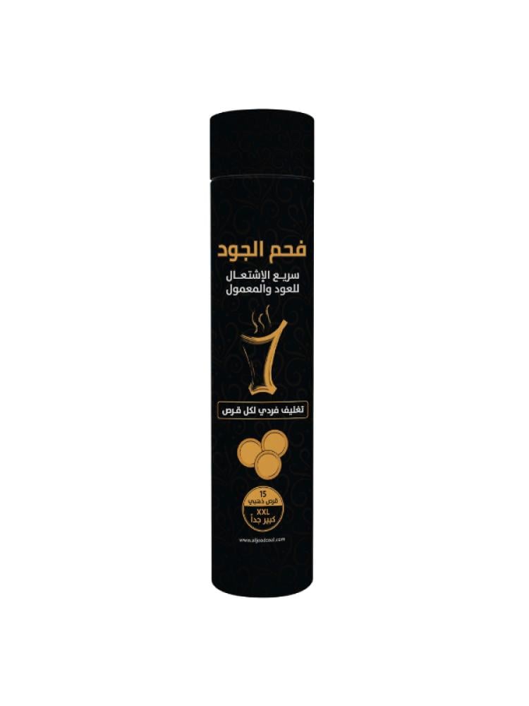 Quick-lighting round charcoal for oud and mamoul from Al-Joud Charcoal, 15 discs