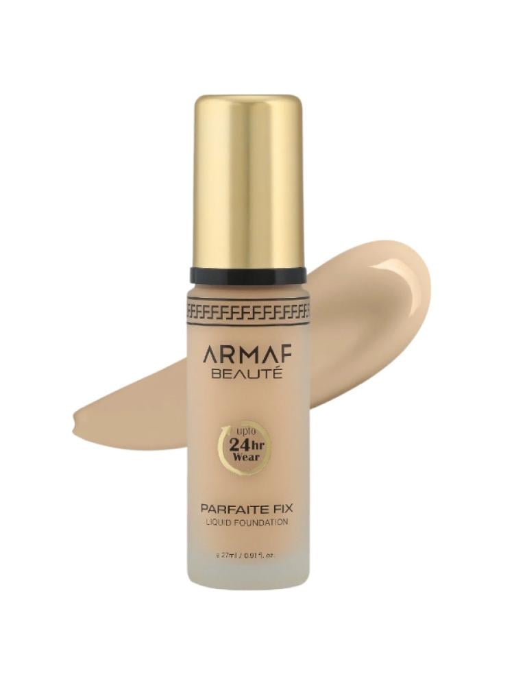 Discover the secret to a flawless look with the Perfect Fix Liquid Foundation by Armaf Beaute.This foundation delivers an exceptional blend of high coverage and deep hydration in every drop. It leaves your skin with a long-lasting natural matte finish, ensuring a smooth, blemish-free appearance all day long.Features:Medium to Full Coverage: Evens out skin tone and expertly conceals imperfections.Natural Matte Finish: Eliminates excess shine for a soft, natural glow.Long-Lasting Wear: Provides a perfect look for hours, resistant to water and sweat.Enriched with Nourishing Ingredients: Infused with hyaluronic acid and vitamins C, E, and B5 to hydrate and protect your skin.Suitable for All Skin Types: Ideal for normal and oily skin, offering comfort and freshness throughout the day.No need to compromise on quality or perfection! With Armaf Beaute’s Perfect Fix Liquid Foundation, achieve a flawless, refreshed, and perfect look with every application. Enjoy natural beauty that lasts effortlessly.
