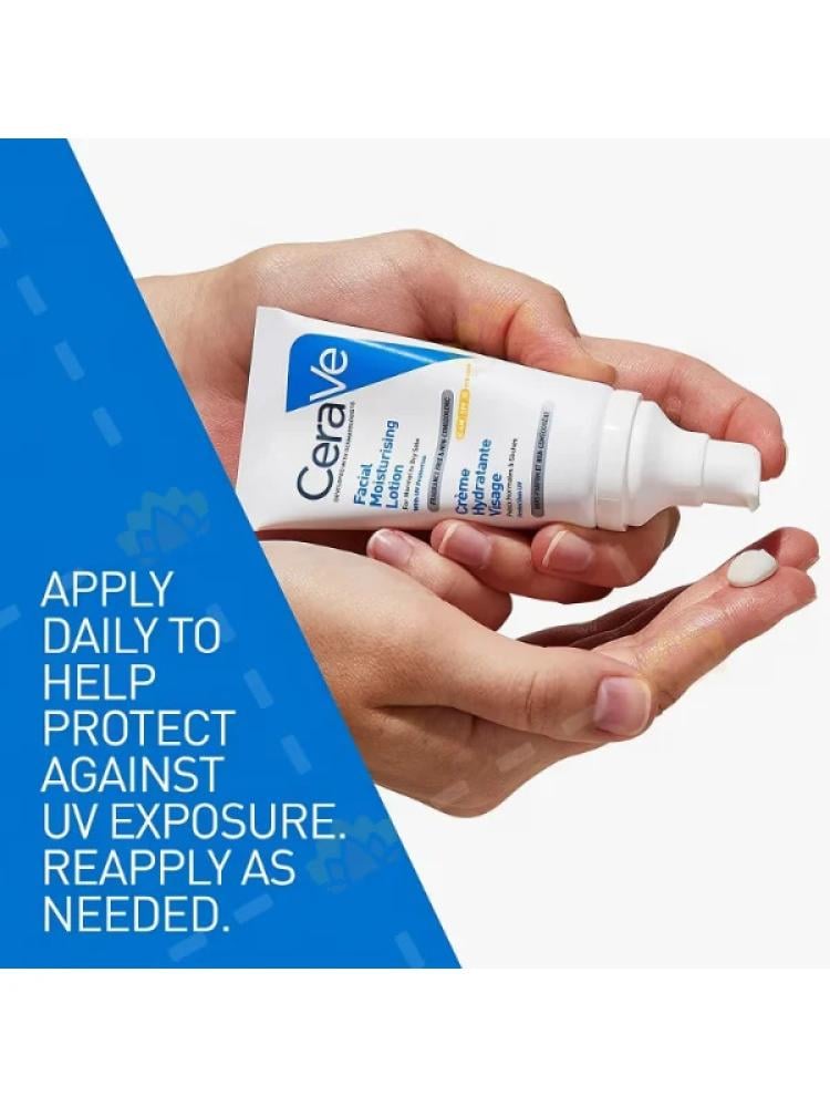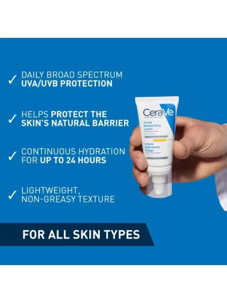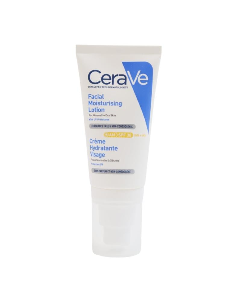 The CeraVe Face Moisturizer with SPF 30 (52 ml) is the ideal solution for healthy, protected skin. Its effective formula combines deep hydration with protection from harmful UV rays, helping to enhance the skin's health while providing long-lasting moisture throughout the day.Features and Benefits:Sun Protection: Contains SPF 30 to shield the skin from both UVA and UVB rays, safeguarding it from sun damage.Deep Hydration: Formulated with hyaluronic acid, it helps attract moisture to the skin, providing lasting hydration.Soothes the Skin: The niacinamide in the formula calms the skin, reducing redness and irritation, making it perfect for sensitive skin.Oil-Free and Fragrance-Free: With a formula free of oils and fragrances, it is ideal for sensitive, acne-prone skin and maintains skin balance without clogging pores.Nourishes and Soothes: Enriched with three essential ceramides, it helps restore the skin's barrier, promoting its health and improving its appearance.Non-Comedogenic: Thanks to its oil-free formula, it won't clog pores or contribute to blackheads.Lightweight and Non-Greasy: The fast-absorbing texture makes it suitable for daily use without feeling heavy on the skin.Ideal for Dry Skin: Particularly effective for dry skin caused by acne treatments, as it helps moisturize and calm flaky, irritated skin.Long-Lasting Hydration: Provides up to 24 hours of continuous hydration.With CeraVe, you can enjoy soft, hydrated, and sun-protected skin all day long.