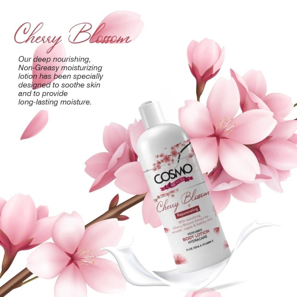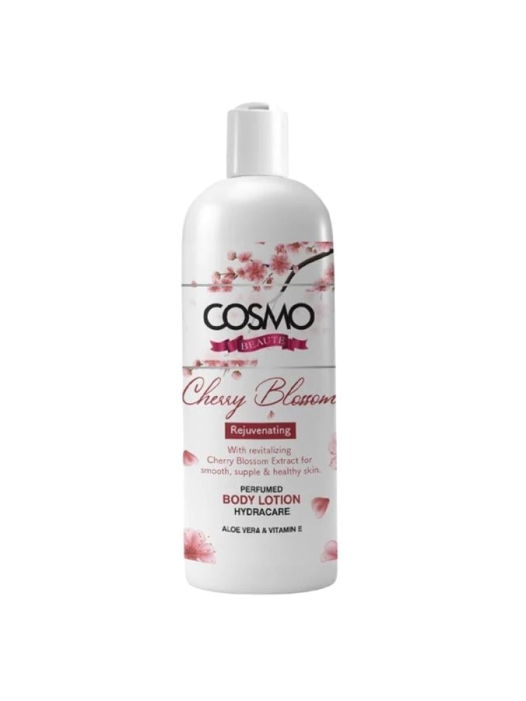 Would you like to try a lotion that provides your skin with deep hydration and a touch of refreshment? Cosmo's Cherry Blossom Body Lotion is the perfect choice for smooth, youthful skin, with its unique formula ensuring long-lasting moisture and effective protection.Ingredients of Cherry Blossom Body Lotion:Cherry Blossom Extract: Helps renew the skin, giving it a radiant and vibrant appearance.Aloe Vera: Known for its soothing and moisturizing properties, it helps calm dry and irritated skin.Vitamin E: Acts as an antioxidant, maintaining skin health and enhancing its elasticity.Features and Benefits of Cosmo's Cherry Blossom Lotion:Deep Hydration: Nourishes the skin deeply, providing long-lasting moisture thanks to aloe vera and Vitamin E.Non-Greasy Formula: Absorbs quickly without leaving any greasy residue, making it ideal for daily use.Cherry Blossom Fragrance: A light, refreshing scent that gives your skin a natural fragrance that lasts throughout the day.Improves Skin Elasticity: Enhances skin elasticity with cherry blossom extract, leaving the skin soft and glowing.Relieves Dryness: Contains aloe vera, which soothes dry and irritated skin.Economical Size: Comes in a 500 ml bottle, making it perfect for daily use or for the entire week.Enjoy soft, radiant skin with Cosmo's Cherry Blossom Body Lotion and maintain a refreshing scent all day long.
