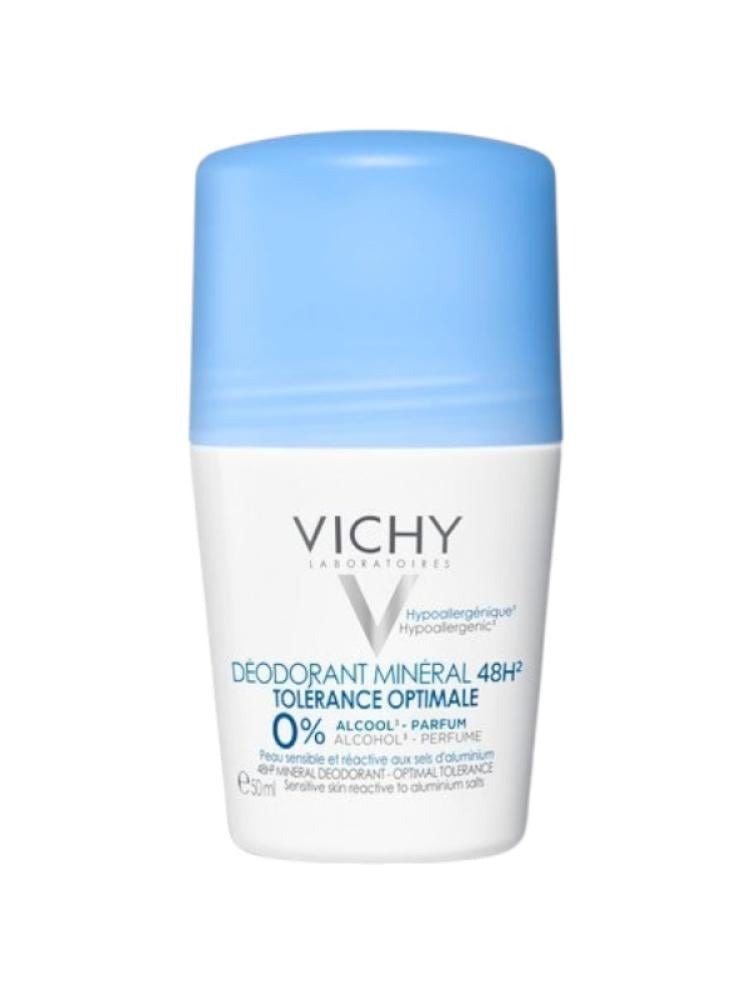 Get superior protection for your sensitive skin with Vichy Roll-On Deodorant , which provides you with continuous protection throughout the day.Features and Benefits:48-hour protection: Provides effective protection against unpleasant odors all day long with a long-lasting antiperspirant effect.Aluminum-free formula: Contains no aluminum salts, making it ideal for sensitive skin.Mineral Rich: Contains nourishing minerals to soothe and strengthen sensitive skin.Suitable for sensitive skin: Gentle formula ensures effective protection without causing irritation or dryness.Antiperspirant effect: Provides 48-hour protection against sweat and odor.Alcohol and Fragrance Free: Fragrance and alcohol-free formula to keep sensitive skin comfortable.Give your skin the care it deserves with Vichy Roll-On Deodorant , and enjoy long-lasting protection and all-day dryness without affecting the softness of your skin.