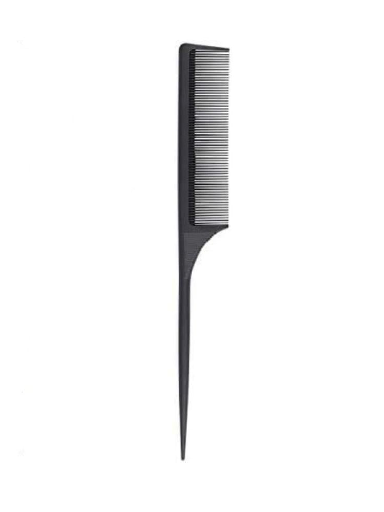 Here's the English version of the concise description:Introduction: This black styling comb with a pointed tail is a precise and controlled tool, ideal for professionals and personal use to create intricate hairstyles.Benefits:High Precision in Parting and Styling: Fine teeth for easy and precise hair sectioning.Slender Pin Tail: For creating clean partings and assisting with dye distribution.Comfortable and Durable Design: Made from high-quality plastic for a comfortable grip and break resistance.Lightweight and Portable: For easy carrying and use anywhere.Ideal for All Hair Types: To achieve the best results in styling and parting.This comb is an essential tool for anyone concerned with the precision and professionalism of hairstyles, helping to achieve elaborate and stunning looks.