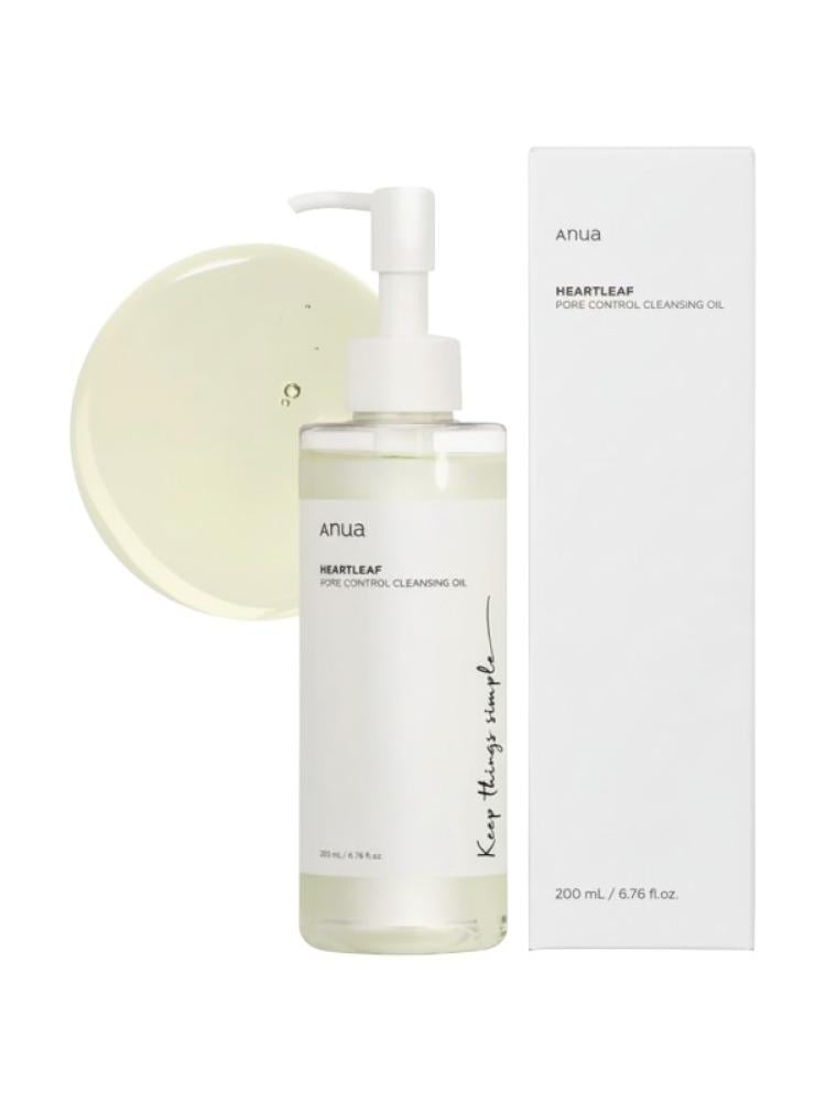Anua Heartleaf Pore Control Cleansing Oil – 200ml is a lightweight cleansing oil designed to deeply cleanse the skin, remove impurities and makeup, while keeping the skin hydrated and soothed.Key Benefits:Deep Cleansing: Contains a blend of botanical oils such as jojoba oil, olive oil, and grape seed oil, which effectively dissolve impurities and makeup without clogging pores.Hydrating & Soothing: Formulated with Heartleaf extract, known for its calming properties, helping to prevent irritation and maintain skin moisture.Suitable for All Skin Types: Its gentle formula makes it ideal for daily use on various skin types, including sensitive skin.How to Use:Pump an appropriate amount of oil into dry hands.Gently massage onto dry skin, focusing on areas with makeup and impurities.Add a small amount of water to emulsify the oil into a milky texture and continue massaging.Rinse thoroughly with lukewarm water to remove all residue.For best results, use it as part of your daily skincare routine, especially in the evening, to remove makeup and accumulated impurities.