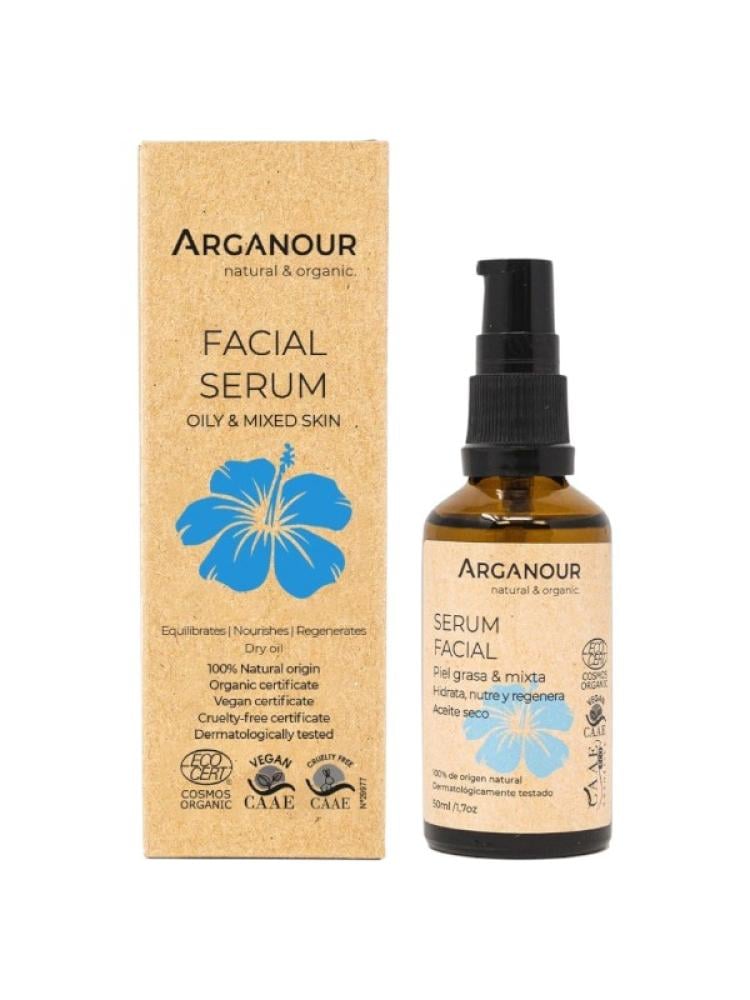 Give your oily and combination skin the perfect care with Arganour Organic Face Serum 50ml, for effective hydration and natural balance without any shine.Features & BenefitsAn organic blend of Argan, Jojoba, Babassu, Avocado, and Rosemary oils for deep skin nourishment.Helps improve oil balance and leaves the skin looking healthy and youthful.Absorbs quickly into the skin, providing deep hydration without any residue.Its dry texture leaves no shine or leftover traces.100% natural ingredients and free from parabens.How to UseApply daily to clean face and neck, massaging gently in upward motions until fully absorbed.With regular use, the serum helps improve the appearance of oily and combination skin, providing natural balance, deep hydration, and a healthy, radiant look.
