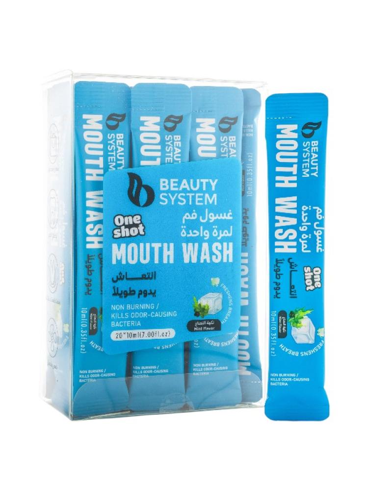 Enjoy long-lasting freshness and cleanliness with Beauty System Mint Flavor Mouthwash, the practical solution for maintaining oral and gum health anytime, anywhere.Features and Benefits:Effective formula helps eliminate bad odors and enhances fresh breath.Contains a refreshing mint flavor for an instant cooling sensation.Convenient, single-use sachets—perfect for travel and on-the-go use.Supports oral health and reduces bacterial buildup with regular use.Each sachet contains 10ml, the ideal amount for one-time use.Beauty System Mouthwash is the perfect choice for those seeking instant freshness and cleanliness, with a practical design that fits your daily lifestyle.