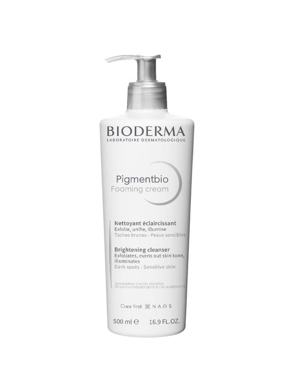 Start your daily routine towards radiant, even-toned skin with Bioderma Pigmentbio Foaming Cream, the dual-action cleanser for sensitive skin.Features & Benefits:Brightens and evens skin tone: Reduces dark spots and restores the skin’s natural radiance.Gentle and effective cleansing: Creamy foam gently cleanses with mild exfoliation to remove impurities.Suitable for sensitive skin: Mild formula that does not irritate and maintains skin health.Innovative formula: Patented combination of active ingredients for effective skin brightening results.Natural radiance: Improves skin texture, leaving it clearer and more luminous.Economical size: 500 ml bottle for long-lasting use.Make Bioderma Pigmentbio Foaming Cream part of your daily skincare routine for clean, soft, even-toned, and radiant skin with every use.