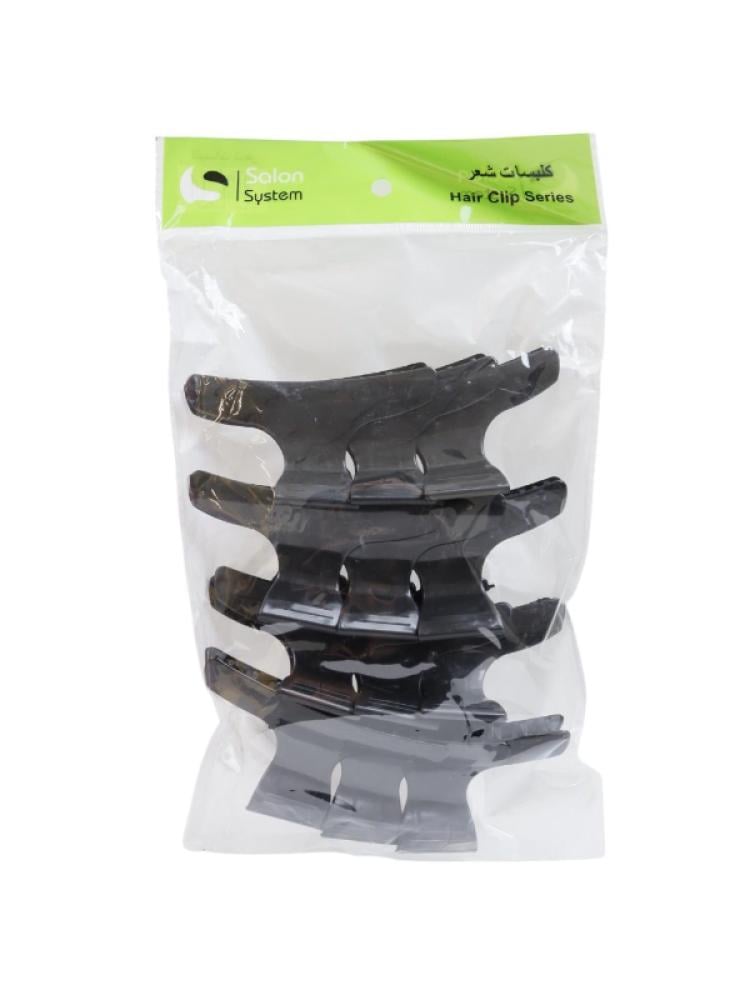 The Salon System Black Plastic Hair Clips (12 pieces) are practical and stylish accessories designed to secure hair during styling or care routines.Features:Vibrant and Attractive Design: Available in BLACK color, adding a lively touch to your appearance.Durable Plastic Construction: Ensures strong grip and withstands frequent use.Set of 12 Pieces: Allows multiple clips to be used simultaneously or provides spares for future use.Usage Instructions:Divide your hair into sections as needed.Use the clips to secure each section in place during styling or care.After finishing, gently remove the clips to maintain hair health.If you're looking for practical and stylish accessories to secure your hair, the Salon System Colored Plastic Hair Clips (12 pieces) are an ideal choice to meet your needs.