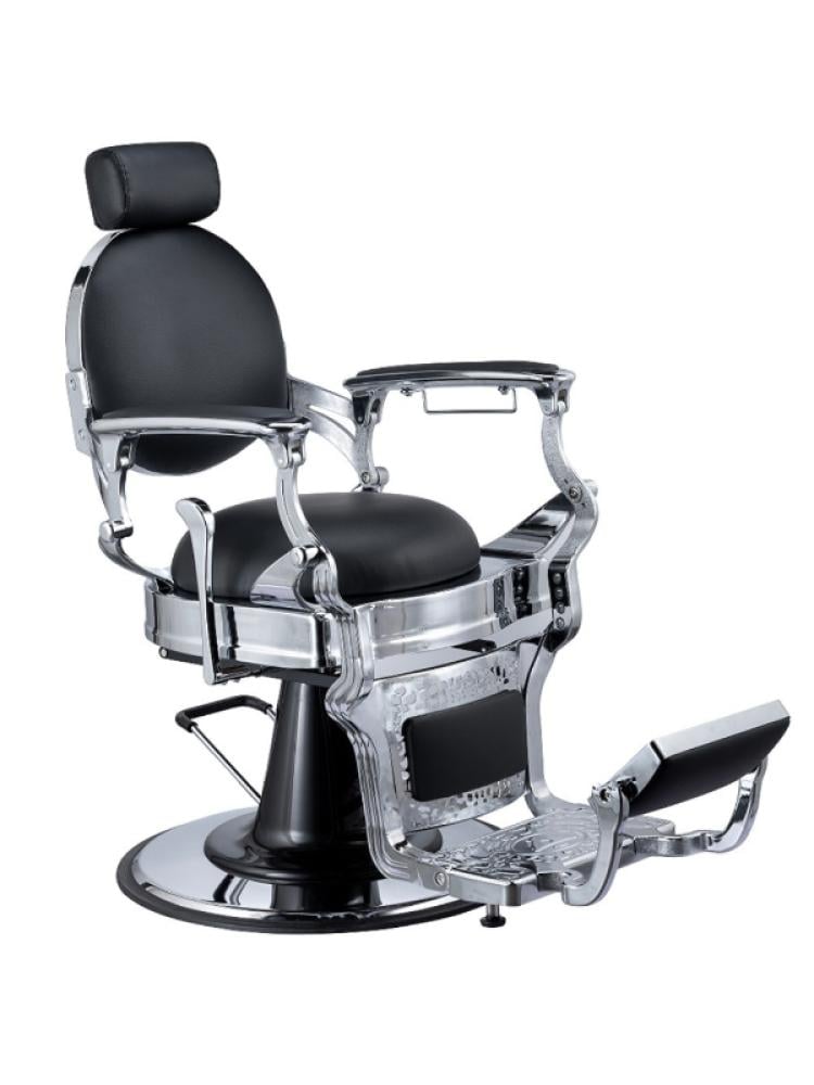 System Salon offers a men's barber chair that combines elegance and practicality, specially designed to provide the best shaving experience for your clients. The chair features a modern design that combines an elegant black padded frame with shiny silver iron for the base and arms. This color combination gives it a luxurious appearance befitting the finest salons.Features:Luxurious and Durable Design: The chair features a sturdy frame made of silver iron with a glossy finish, ensuring excellent stability and resisting rust and corrosion.Unparalleled Comfort: The chair provides optimal support for the back and arms, with high-quality padded upholstery that keeps clients feeling completely comfortable throughout the session.Easy to Adjust: The chair features a smooth adjustment system that allows for varying the height and tilt angle, making it easy for the barber to perform his work with precision and comfort.Product Uses:This barber chair is the perfect addition to any men's barbershop or beauty center seeking excellence and professionalism. It is also suitable for personal use in home grooming rooms.
