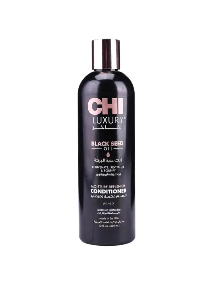 Begin your perfect hair care journey with CHI Luxury Conditioner, combining deep hydration with rejuvenation and strengthening through the rare essence of Black Seed Oil.Features and Benefits:Deeply replenishes moisture to dry, damaged hair, leaving it exceptionally soft.Nourishes hair with essential vitamins and antioxidants.Contains Black Seed Oil rich in antioxidants and vitamins.Includes natural extracts that promote a healthy scalp.Maintains a balanced pH of 3.5 for scalp health.Strengthens hair from roots to ends, reducing split ends and breakage.Protects hair from external harmful factors and heat damage.Gives your hair a healthy, shiny, frizz-free appearance.Sulfate-free and paraben-free formula, suitable for all hair types including sensitive scalp.Complete your hair care routine with CHI Luxury Conditioner with Black Seed Oil, and enjoy stronger, healthier, and long-lasting shiny hair.