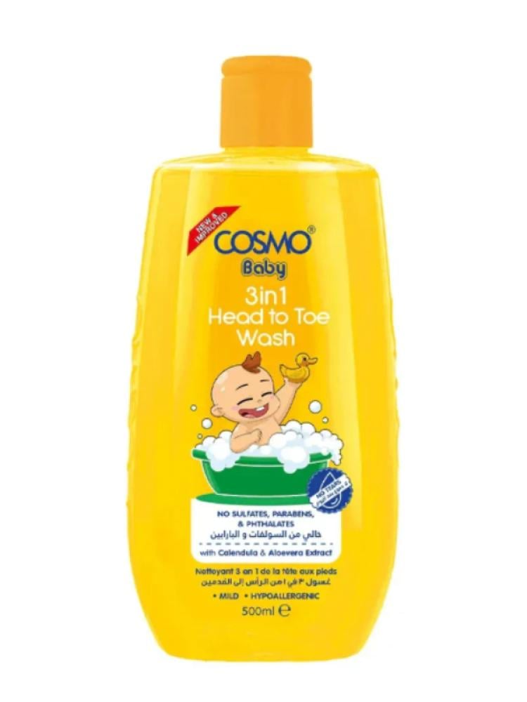 Cosmo 3 in 1 Baby Wash from Head to Toe for Sensitive Skin, 500 ml