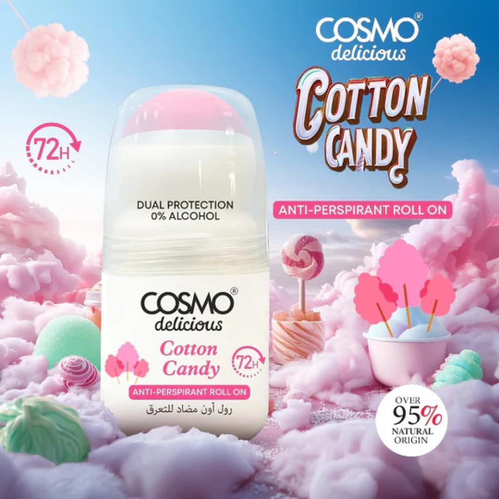 Enjoy a fun and refreshing feeling with Cosmo Delicious Cotton Candy Roll-On – a soft, sweet touch that adds a playful twist to your day.Features & Benefits:Strong, long-lasting protection: Prevents sweat and odor for up to 72 hours.Cotton candy scent with effective protection: Keeps you feeling sweet and fresh all day.Smooth and easy application: Roll-on design glides effortlessly over the skin.No stickiness or residue: Dries quickly, leaving a clean and comfortable feeling.Gentle formula: Smooth-gliding, suitable for all skin types, and alcohol-free.Keeps you dry and refreshed all day: Long-lasting protection with a delightful fragrance.Fun and playful freshness: Perfect for adding a lively, sweet touch to your daily routine.Practical 50-gram size: Ideal for daily use and easy to carry while traveling.Start your day with fun freshness and a sweet touch – your perfect choice for lasting comfort and confidence.