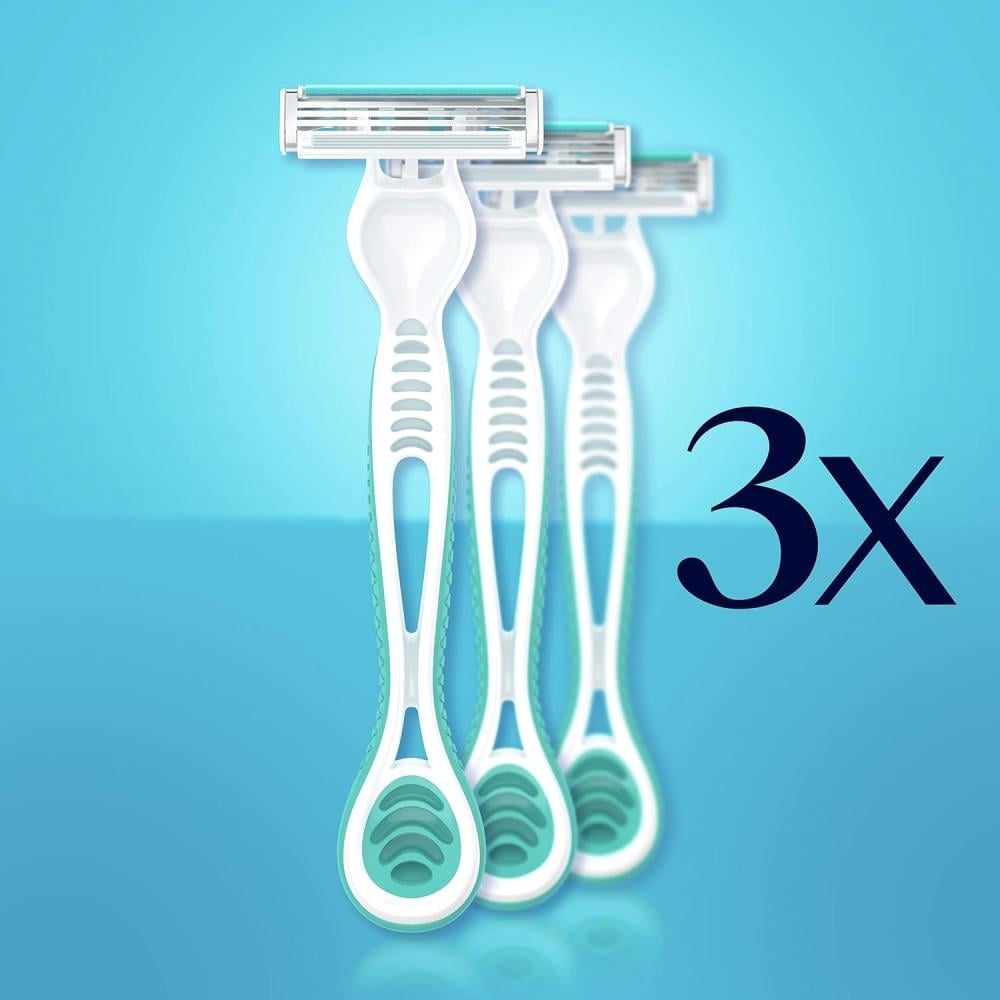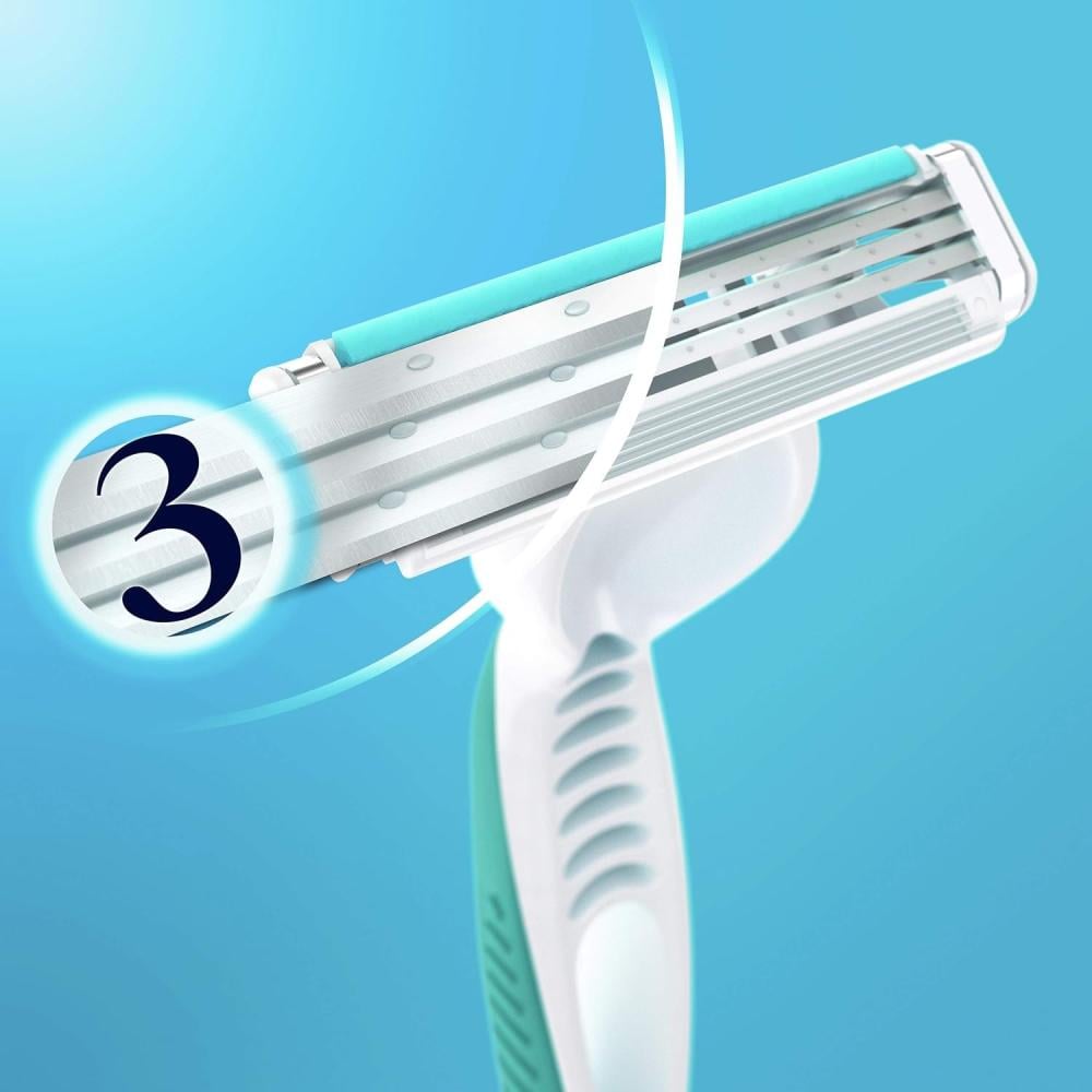 Get a smooth and silky shave with Venus 3 Sensitive, specially designed for sensitive skin to provide maximum comfort and safety.Features & Benefits:0% irritation, 100% smoothness: For a gentle and effective shaving experience.SkinElixir lubrication: Delivers the perfect amount of protection and ensures smooth blade glide.3 blades with pivoting head: Guarantees a precise shave that adapts to all body contours.Dermatologist-tested: Safe for sensitive skin.Disposable razor: Easy to use without the need to change the blade.Ergonomically designed handle: Allows easy maneuvering around tricky areas like ankles and knees.Moisturizing strip: Ensures smooth glide and added comfort during shaving.Choose Venus 3 Sensitive Disposable Razor for a precise, comfortable, and silky shave, perfect for daily use and travel.