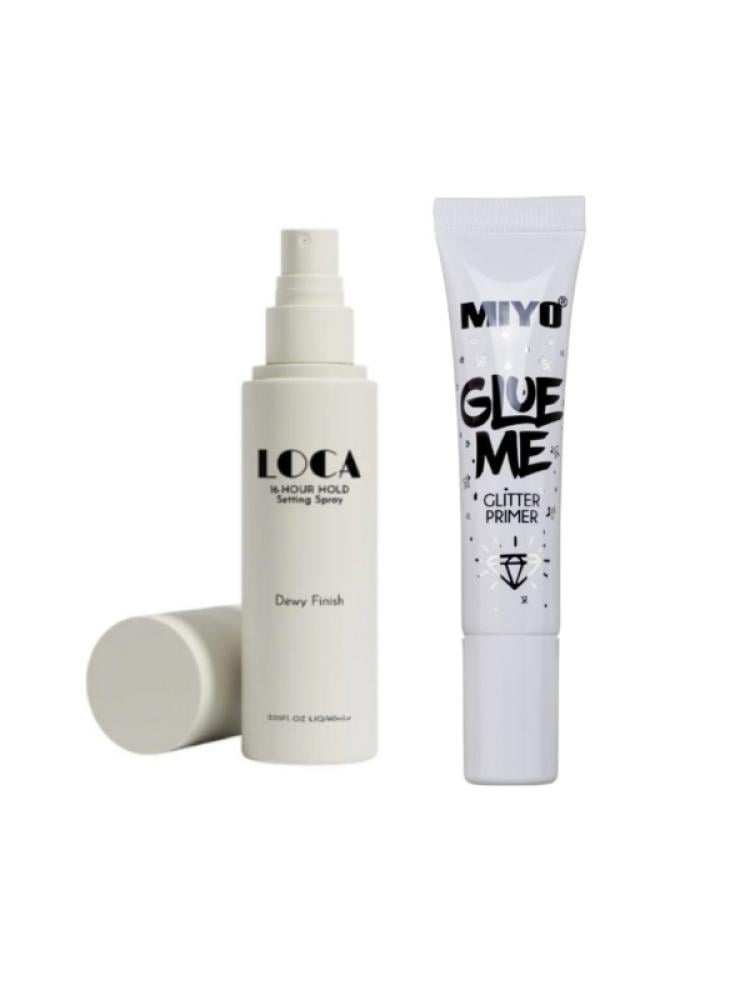 Keep your makeup in place and radiant for hours with the Fixed Look Duo Set, which combines a natural glow with perfect hold. This set is specially designed to ensure you have a radiant look that lasts all day.Set Contents:Luca Dewy Finish Makeup Setting Spray - 60 mlGives skin a soft glow and a natural dewy finish.Sets makeup for long hours without fading.Moisturizes the skin and maintains its vitality.Miu Glue Me Eyeshadow Primer and Setter - 15 mlThe perfect base for setting eyeshadow.Prevents caking and enhances color stability.Makes colors more vibrant and defined.Why you'll love this set?Perfect all-day hold.Naturally smooth skin.Enhances eye radiance and highlights.A practical set suitable for everyday use and special occasions.Make your makeup last longer with the Fixed Look Duo Setting Spray—the secret to an effortlessly radiant look. Order it now to enjoy lasting beauty!