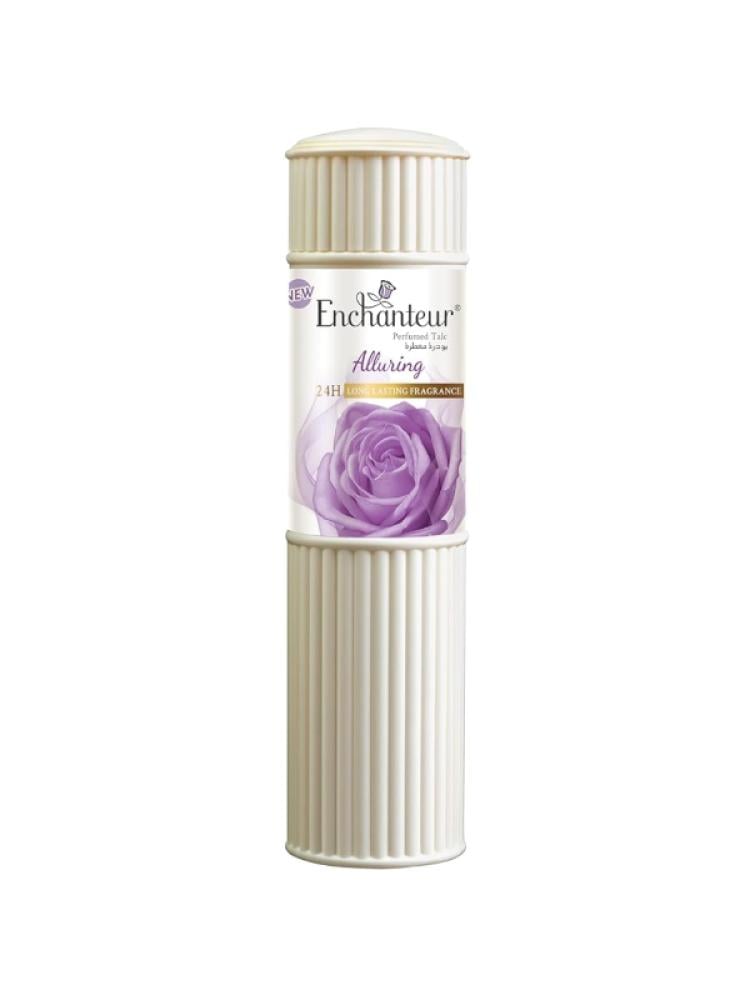 Enjoy luxurious care with Enchanter Louring Talc Powder, which gives your skin a touch of softness and freshness all day long. Its captivating and distinctive fragrance, made from rose, iris, and enriched with creamy vanilla, leaves your skin fragrant and beautiful, while it absorbs moisture and sweat to provide you with a lasting feeling of comfort.What makes the product special:Enchanting fragrance: A unique blend of luxurious rose and iris with a touch of creamy vanilla, offering you a beautiful floral scent.Soft and silky texture: A lightweight powder that leaves your skin smooth and soft with an immediate feeling of freshness.Effective moisture absorption: Helps absorb sweat and moisture, keeping your skin dry and comfortable throughout the day.Suitable for all skin types: Gentle and safe for sensitive skin, can be used daily without causing irritation.Modern and elegant packaging: Comes in a beautiful design, making it easy to carry and use anytime, whether at home or while traveling.Long-lasting fragrance: A floral scent that lasts all day, leaving you with a continuous feeling of freshness and femininity.How to use: Apply after showering or at any time during the day for an instant refresh and a fragrant scent that lasts all day.Enchanter Louring Talc Powder is the perfect choice for anyone seeking a distinctive fragrance experience with a soft touch and a captivating scent that lasts. Try it today and enjoy soft, fragrant skin all day long.Suggested Products:Hamedi Oud Body Butter, 250mlHamedi Luxury Amber Body Lotion, 500mlHamedi Oud Rose Body Lotion, 500ml