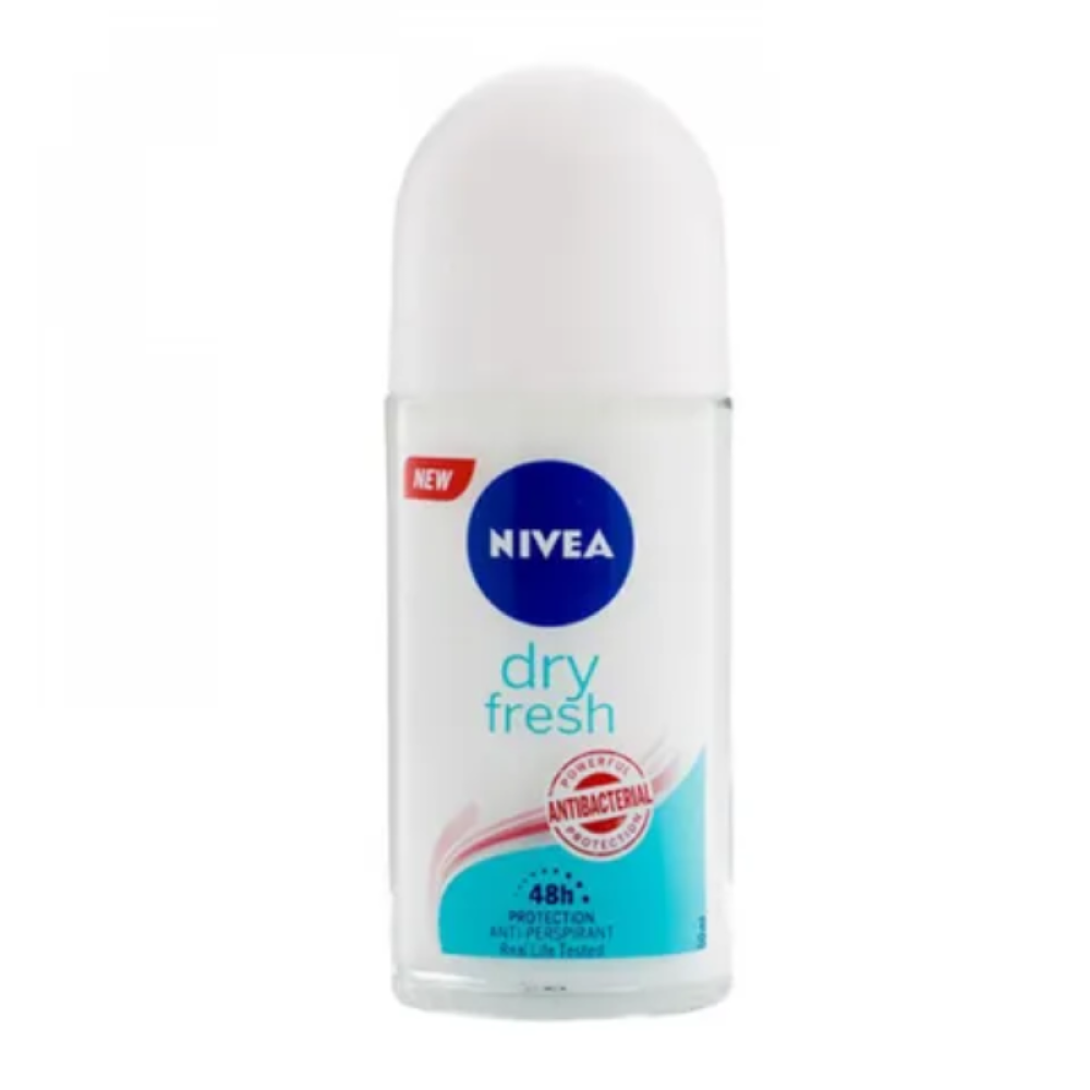 Enjoy guaranteed protection from sweat with Nivea Dry & Fresh Roll-On Deodorant for Women. Its unique formula with double protection factor gives you double protection from sweat odors for up to 48 hours with long-lasting freshness.Product Benefits:Gives you effective protection against bad sweat odors for up to 48 hours.Contains two protection factors against sweat and bad odorsGives you a fresh and pleasant scent all day long.Approved by dermatologists.Free of alcohol and dyesDries quickly and does not leave any annoying color or trace on your clothes.Product IngredientsWater, Aluminum Chlorohydrate, PPG-15 Stearyl Ether, Steareth-2, Steareth-21, Aluminum Sesquichloride Hydrate, Perfume, Magnesium Aluminum Silicate, Avocado Oil, Trisodium EDTA, BHT, Benzyl Alcohol, Benzyl Salicylate, Linalool, Citronella, Limonene, Geraniol, Alpha-Isomethyl IononeHow to use:After showering, dry the area well and then apply the roll-on directly to it.Avoid using it on irritated skin or skin with wounds or bruisesConclusion:Say goodbye to the smell of sweat with Nivea Dry & Fresh Roll-On Deodorant for Women and get double and sure protection against sweat. Order it now and enjoy confidence and activity all the time!