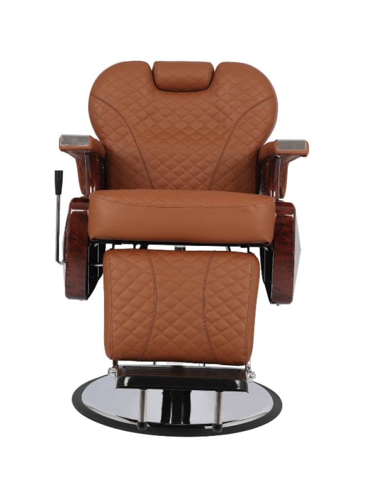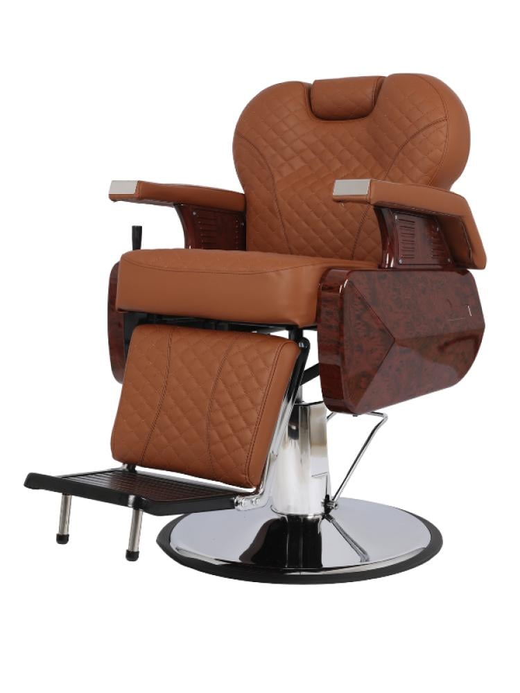 Audi Men's Barber Chair, Brown Wood, Camel Stripe, from Salon System - Model A8033NC
