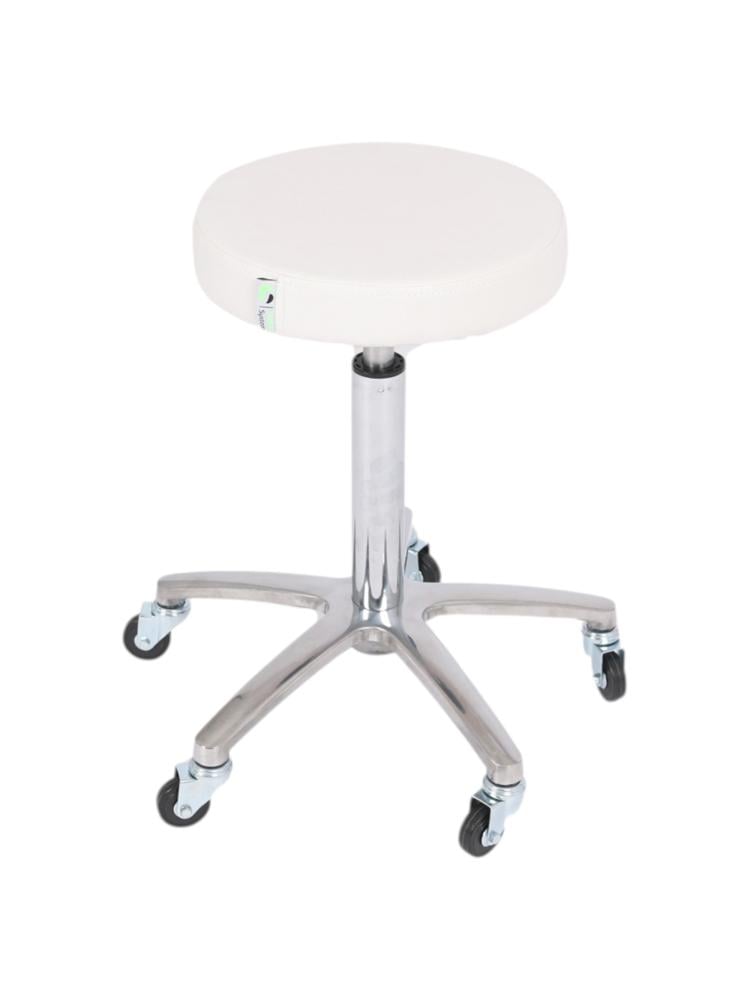 White Round Salon Stool with Wheels by Salon System (Model W7296): Practical Design with Modern Elegance for All-Day ComfortSpecifications:Dimensions:...