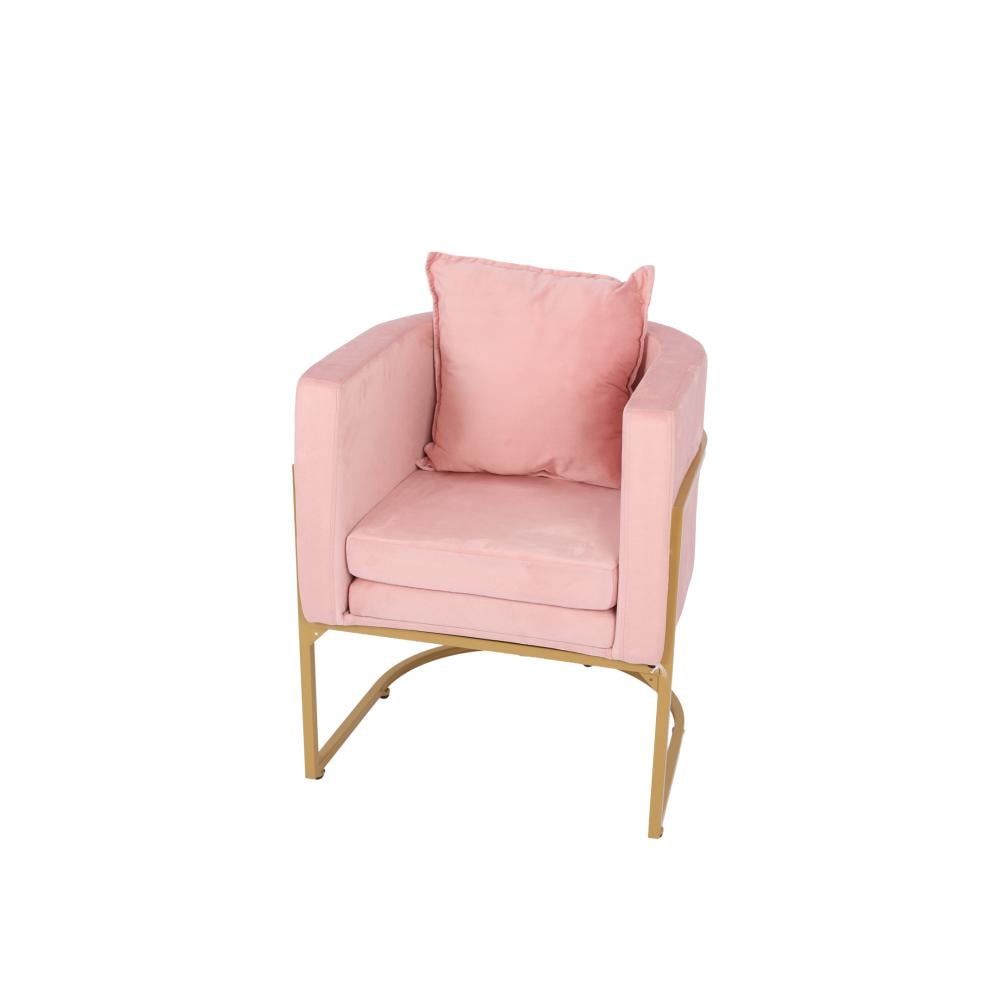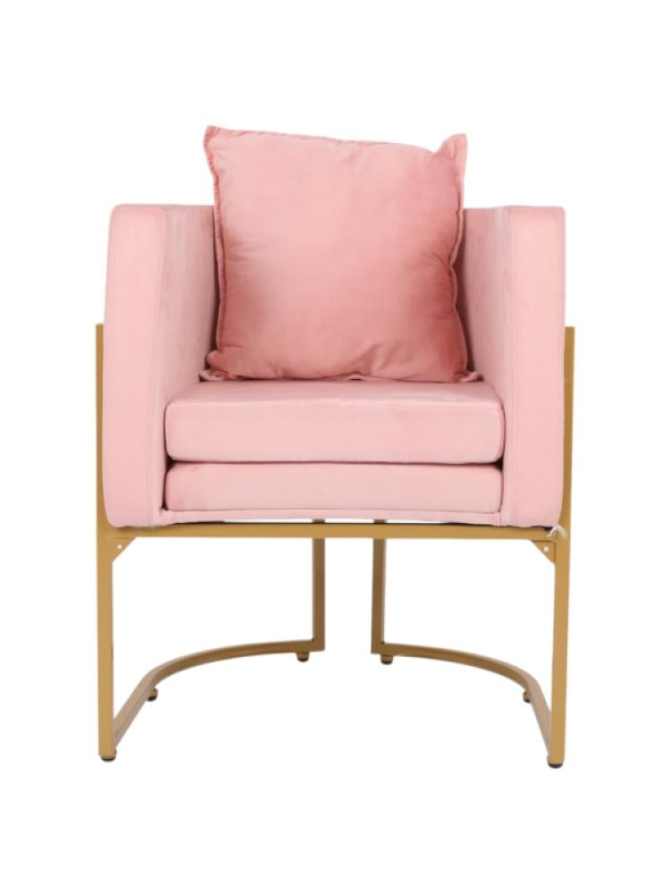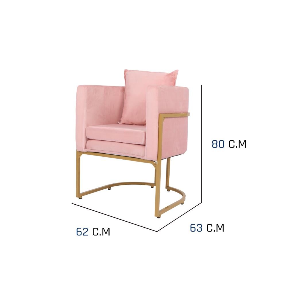 Add a touch of luxury and elegance to your salon with the women's salon chair from Salon System!Specifications:Color: Luxurious light pink that blends harmoniously with the glossy gold metal frame.Material: Soft velvet upholstery provides a rich texture and superior comfort, paired with a sturdy gold-coated iron frame for lasting durability.Comfortable Design: Features padded armrests and a supportive back cushion to enhance client comfort while seated.Stable & Elegant Base: A modern base design ensures excellent stability and adds a sophisticated decorative flair.Dimensions:Height: 80 cmWidth: 63 cmDepth: 62 cmFeatures & Benefits:Elegant Design: The combination of soft pink and gold creates a chic and modern aesthetic.High Comfort: Plush upholstery and a supportive cushion offer a luxurious seating experience.Durable & Practical: Built with high-quality materials to withstand intensive daily salon use.Visually Appealing: A standout piece that enhances your space and reflects refined taste.Versatile Use: Perfect for waiting areas, makeup stations, or relaxation corners.Make the Salon System chair a signature addition to your space, offering your clients a luxurious seating experience in a setting that speaks of style and professionalism.