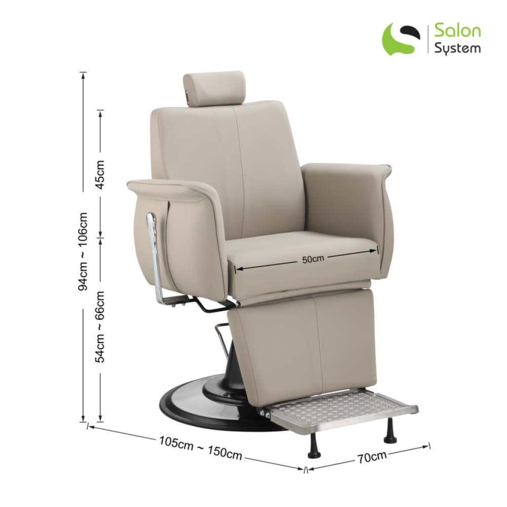 Elevate your salon beauty experience with the Salon System GREY 88092 Women's Haircut and Makeup Chair – combining ultimate comfort, modern design, and multiple functions, making it the ideal choice for every professional salon.Features and Information on the Salon System Grey Women's Haircut and Makeup Chair:Stylish design in a luxurious grey color that complements all modern salon decors.Sturdy frame and circular metal base ensure stability and durability during use.A wide, 50cm padded seat provides complete comfort for clients.A high, adjustable backrest with a height ranging from 94 to 106cm provides excellent back support.A practical footrest with a non-slip metal base for leg rest.Height adjustable from 54 to 66cm to suit all working positions.Base extendable from 105cm to 150cm for flexibility.Adjustable headrest for maximum comfort during makeup or haircuts.Uses of the Salon System Grey Women's Haircut and Makeup Chair:Ideal for cutting all types of women's hair.Suitable for professional makeup sessions in salons and beauty centers.Can be used for skincare and facials.An excellent choice for photo booths in event salons.Excellently enhance your salon and provide your clients with a luxurious and unforgettable experience with this all-in-one professional chair.