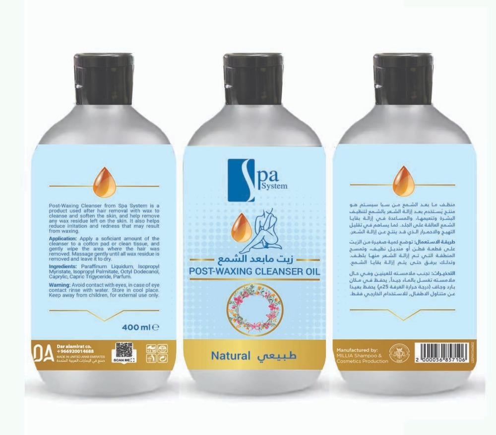 Pamper your skin after waxing – give your skin deep cleansing and instant softness with Spa System Natural Post-Wax Cleansing Oil.Key Benefits:Removes wax residues easily: Gently and effectively cleans the skin after waxing.Soothes skin and reduces redness: Helps calm irritation caused by waxing.Softens and hydrates: Leaves skin smooth and silky after each use.Easy to use: Suitable for all body areas after waxing.Safe and gentle: Natural “Natural” formula helps maintain healthy skin.How to Use:Apply an appropriate amount of oil to a cotton pad or clean tissue and gently wipe the treated area. Massage lightly until all wax residues are removed and leave to dry.Spa System Natural Oil – for clean, soft, and comfortable skin after every waxing session.