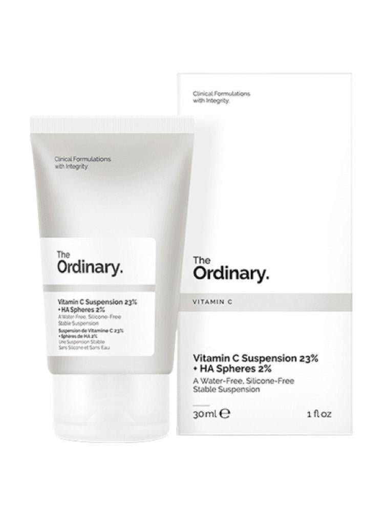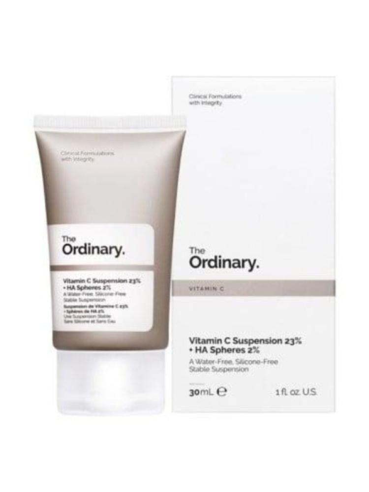 s a water‑free, silicone‑free, vegan formula containing 23% pure L‑Ascorbic Acid paired with hydrating hyaluronic acid spheres. Designed to brighten dull complexions, target early signs of aging, and even skin tone—while offering stable delivery thanks to its minimal-water formulationBenefits:Powerful Brightening & Anti‑Aging: High-strength vitamin C reduces dark spots and uneven texture, offering antioxidant protection and skin tone balanceHydration Boost with HA Spheres: Embedded hyaluronic acid spheres help retain moisture, preventing the dryness often linked to pure vitamin C usageStable Water‑Free FormThe absence of water ensures L‑Ascorbic Acid remains potent and stable, maximizing its effectivenessAffordable & Minimalist: Clear, ingredient-conscious formula without silicones, oils, or gluten—priced around $8—making it a top-value choiceClinically Regarded & Forgiving: Recognized as a standout vitamin C product by sources like Allure and Glamour, praised for its brightening results despite a slightly gritty textureThe Ordinary Vitamin C Suspension 23% + HA Spheres 2% is a high-performance, budget-friendly antioxidant serum ideal for dull, uneven, or early‑aging skin. Its potent, water-free formula delivers stability and brightness, with gentle hydration from HA spheres. Expect slight grittiness at first, but many users find the results worth it, especially when introduced thoughtfully into a skincare routine.